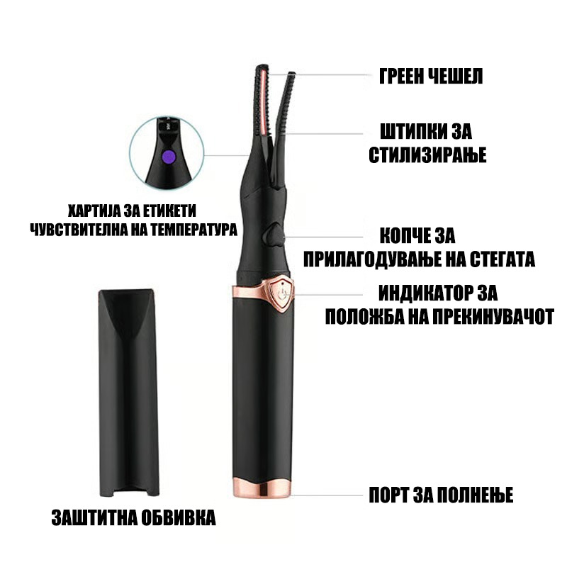 Запознајте го Електричниот Виткач за Трепки – дизајниран да ги подигне и обликува вашите трепки нежно и безбедно. Со интелигентна технологија за загревање, креира природни и долготрајни локни кои изгледаат софистицирано и уредно, далеку од ефектот на класичните механички виткачи.