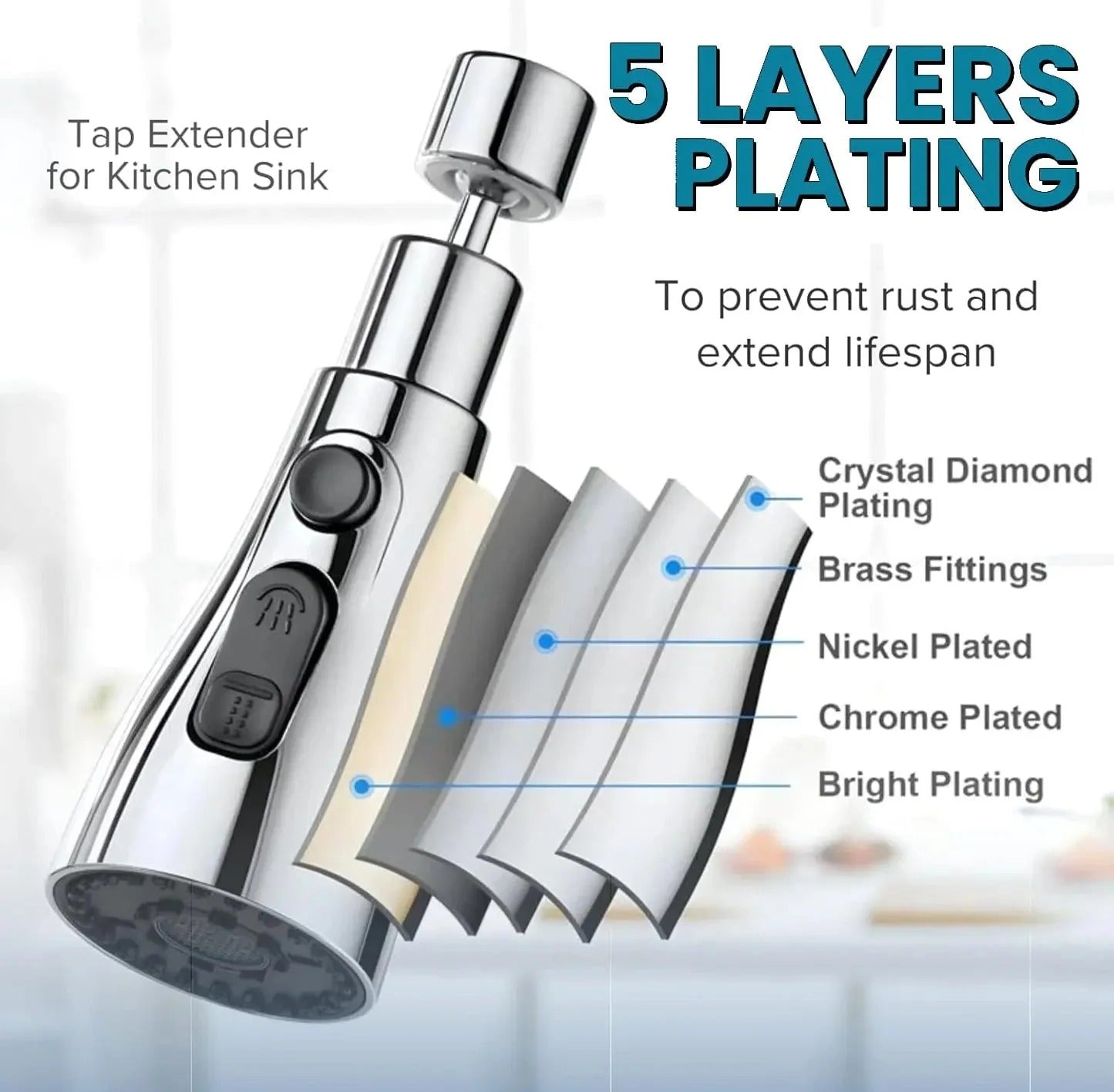 Подобрете го протокот со 3 режима на прскање и 360° ротација за полесно миење садови, зеленчук и мијалник – сè со еден додаток што се монтира за минута.